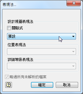 您可以控制模型檔案中簡報視圖與設計視圖表現法定義之間的關聯性。