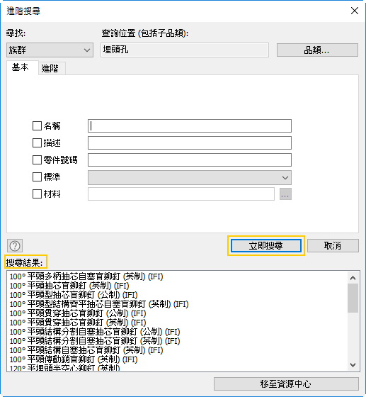 此外,存取「進階搜尋」對話方塊時,「立即搜尋」按鈕會自動啟用。指定您的搜尋準則後,按 Enter 可快速執行搜尋。「搜尋結果」欄位會顯示與作用中的搜尋相關的資訊。