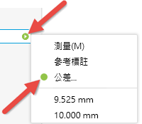 預置現在會儲存值欄位的公差資訊。您可以從欄位圖示列功能表存取「公差」對話方塊。若要回復至無公差值,請將公差類型設定為「預設」,然後儲存該預置。值具有公差時,值編輯控制會在圖示列箭頭下和圖示列功能表上顯示有色背景。