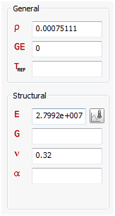 - 您可以在「一般和結構」區段下輸入楊氏係數、剪切係數、蒲松氏比、熱膨脹係數和質量密度。