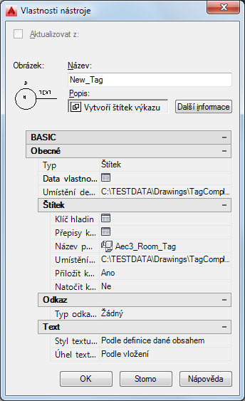 vytvořit nástroj ze štítku výkazu ve výkresu vyberte štítek výkazu a přetáhněte jej na paletu nástrojů.