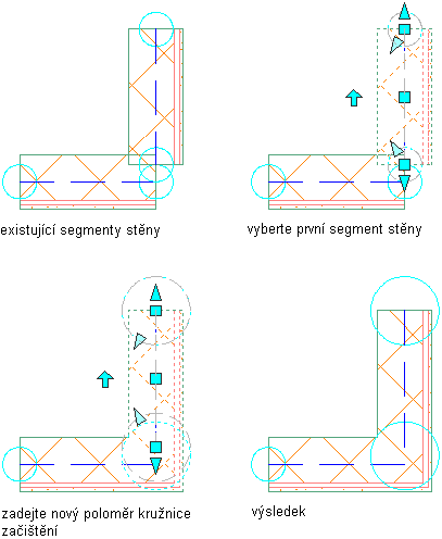 Dále se ujistěte, že ve stěně nejsou žádné krátké segmenty stěny. Ty se mohou vyskytnout tam, kde se protínají středové osy, nebo v případě. že segment je příliš krátký na to, aby vytvořil plný profil. Odstraňte problém začištění tak, že odstraníte krátký segment stěny.