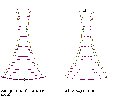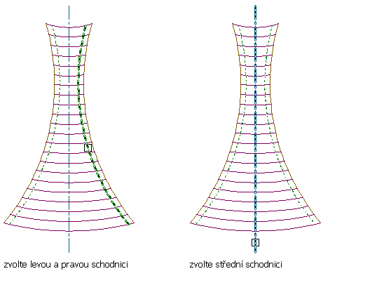 Pro stupně schodiště mohou být vybrány pouze úsečky, lehké křivky nebo segmenty oblouku, které protínají strany schodiště.