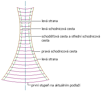 Vytvořte skicu pro vaše vlastní schodiště pomocí úseček, lehkých křivek nebo segmentů oblouku. Všechny úsečky stupně musí protínat boky schodiště. Grafické znázornění tras schodnice musí být přes trasu schodiště spojité.
