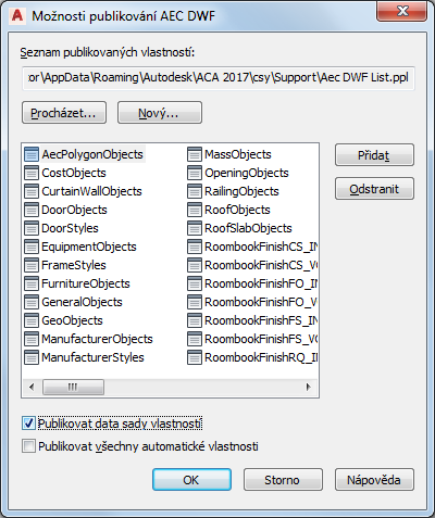 Tuto proceduru použijte k vytvoření jednoho souboru DWF nebo DWFx modelu, na němž pracujete s uživatelem definovanými daty sady vlastností.