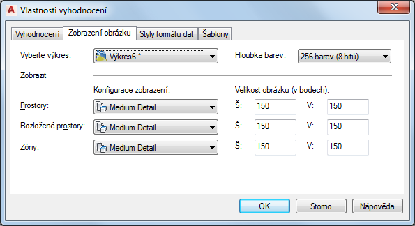 Poznámka: Chcete-li vytvořit a do vyhodnocení zahrnout několik otevřených výkresů, je třeba nastavit vlastnosti obrázku pro každý otevřený výkres zvlášť.