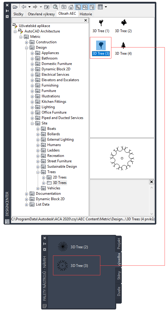 Vytvoření nástroje z obsahu AEC v DesignCenter