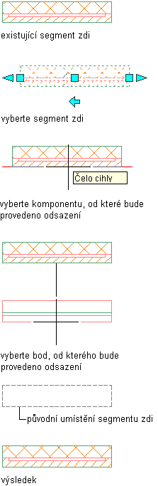 Tento postup slouží k posunutí stěny odsazením stěny od středu nebo plochy komponenty stěny do zadaného bodu nebo zadané vzdálenosti.