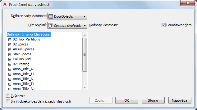 zobrazit ve stromu pouze jeden typ objektu vyberte příslušný objekt v části Filtr objektů.