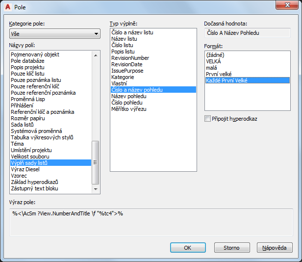 Tento postup slouží k vkládání polí do atributů aplikace AutoCAD.