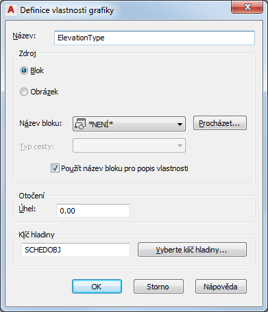 Tento postup použijte k přidání definice vlastnosti grafiky do definice sady vlastností. Hodnoty vlastností grafiky mohou být blokovány v aktuálních souborech výkresů nebo obrázků, jako např. BMP, GIF, PNG nebo TIF. Zobrazený obrázek nemůže být upravován přímo.