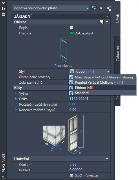 Tento postup použijte, chcete-li vybrat odlišný styl pro jednotku obvodového pláště.
