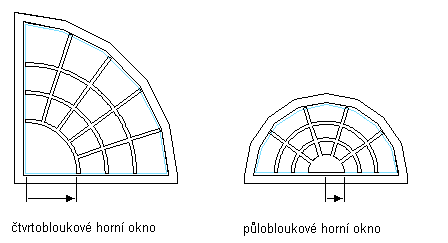 Sluneční vzor je možné přidat pouze do horního parapetu okna. Sluneční vzor lze použít pro tvary oken s kulatou, půlkulatou nebo čtvrtobloukovou horní částí.