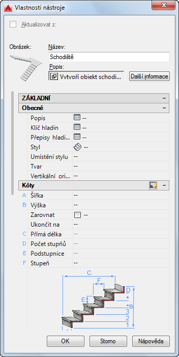 Vlastnosti nástroje schodiště