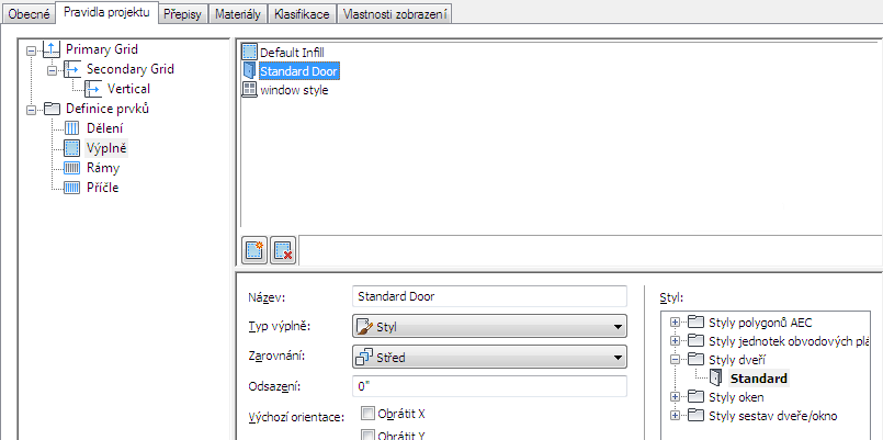 2. Rozbalte nabídku Architektonické objekty Styly obvodových plášťů.