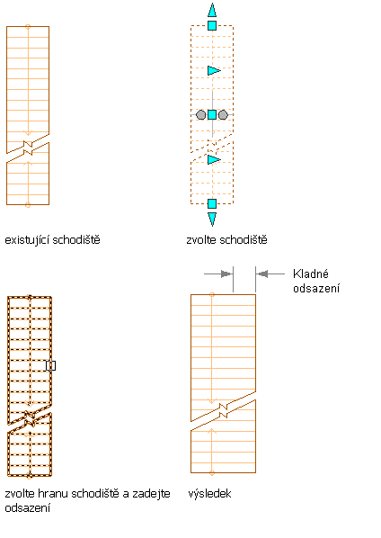 Tento postup použijte k odsazení strany ramene schodiště o zadanou hodnotu.