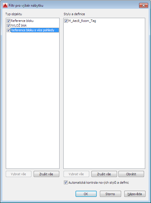 Ve výkresu jsou odkazovány pouze styly a definice, které jsou uvedeny v seznamu.