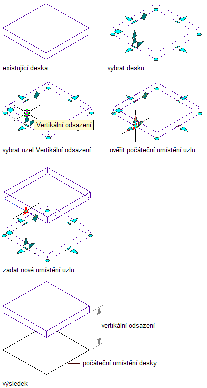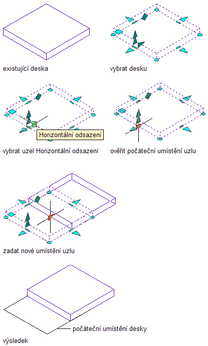 Tento postup slouží ke změně vodorovného a svislého objektu odsazení desky nebo střešní desky v 3D izometrickém pohledu.