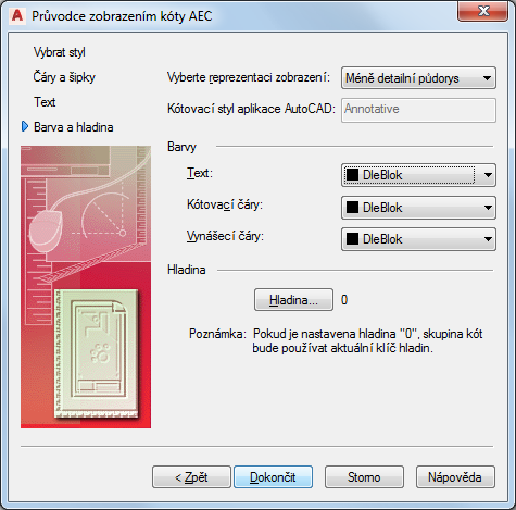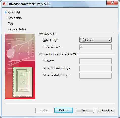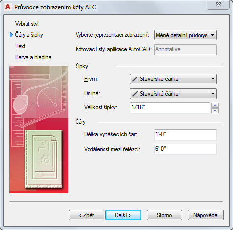 Změna vlastností stylu pomocí Průvodce kótovacím stylem AEC