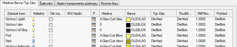 | ve výšce, která je vyšší než hodnota pro Výšku roviny řezu | se objekty zobrazí za použití vlastností, určených pro komponentu Nad rovinou řezu v kartě Hladina/Barva/Typ čáry. |