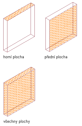 Můžete zadat plochy objektu, které zobrazují šrafování plochy v definici materiálu. Můžete například určit, že šrafování bude pouze na povrchu a levé straně objektu.