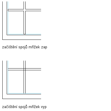 | průsečíky mřížky na rohy | pod položkou Mřížka zvolte možnost Začistit styky. |