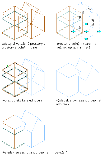 Tento postup slouží ke sloučení 3D volného prostoru s prostorem nebo dalším objektem AEC. Můžete sloučit 3D volný prostor se všemi objekty AEC, které mají 3D geometrii.