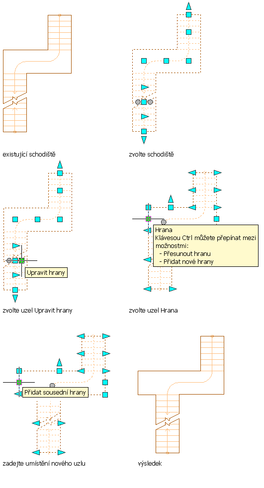 Poznámka: Jestliže změníte šířku schodiště po provedení uzlové úpravy boku, jsou změny uzlu ztraceny.