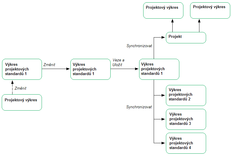 Pokud se styl standardu nebo nastavení zobrazení změní v průběhu trvání projektu, musí být verzováno, být uloženo a poté aktualizováno v projektovém výkresu a v ostatních výkresech projektových norem.