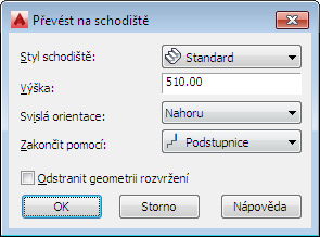 Po vytvoření vlastního schodiště můžete převést jeho libovolnou část do podesty.