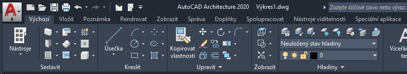 Pracovní prostor je navržen tak, aby umožňoval jednodušší a rychlejší vyhledávání a používání nástrojů a příkazů, které potřebujete mít po ruce při provádění úlohy.