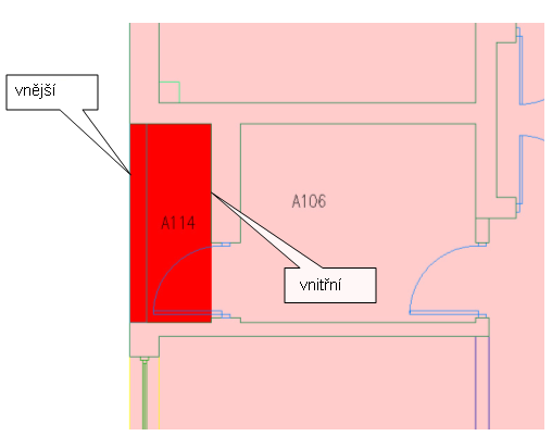 | Sousedící prostor není klasifikován (nezadán) | Měřeno od vnějšího čela stěny |