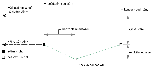 Následující obrázek znázorňuje změnu linie podlaží stěny přidáním vrcholu.