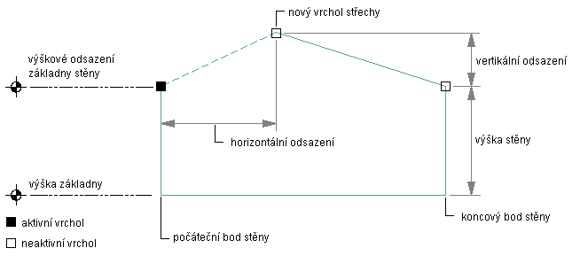 Následující obrázek znázorňuje změnu linie střechy stěny přidáním vrcholu.