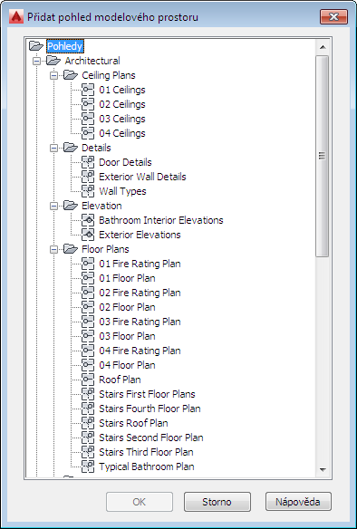 - Pohled modelového prostoru zobrazíte v Navigátoru projektu navigováním na cílový výkres a jeho rozbalením.