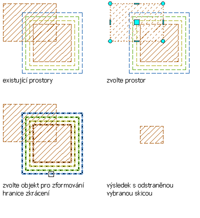 Tento postup slouží k vytvoření nového vysunutého 3D prostoru z překrývající části 2 protínajících se vysunutých 3D prostorů. Můžete zvolit, zda má být po vytvoření nového prostoru ponechána ve výkresu původní geometrie.