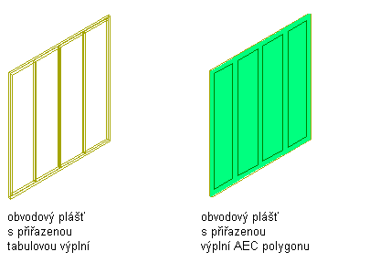 V aplikaci AutoCAD Architecture toolset se objekt obvodového pláště skládá z jedné nebo více osnov. Každá osnova obsahuje buňky, které mohou být vyplněny tabulí, nebo objektem, jako je okno či dveře. Polygony AEC se ideálně hodí k vytváření panelových výplní obvodových plášťů.