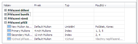 V seznamu přiřazení příčlí se zobrazí nové přiřazení příčle.