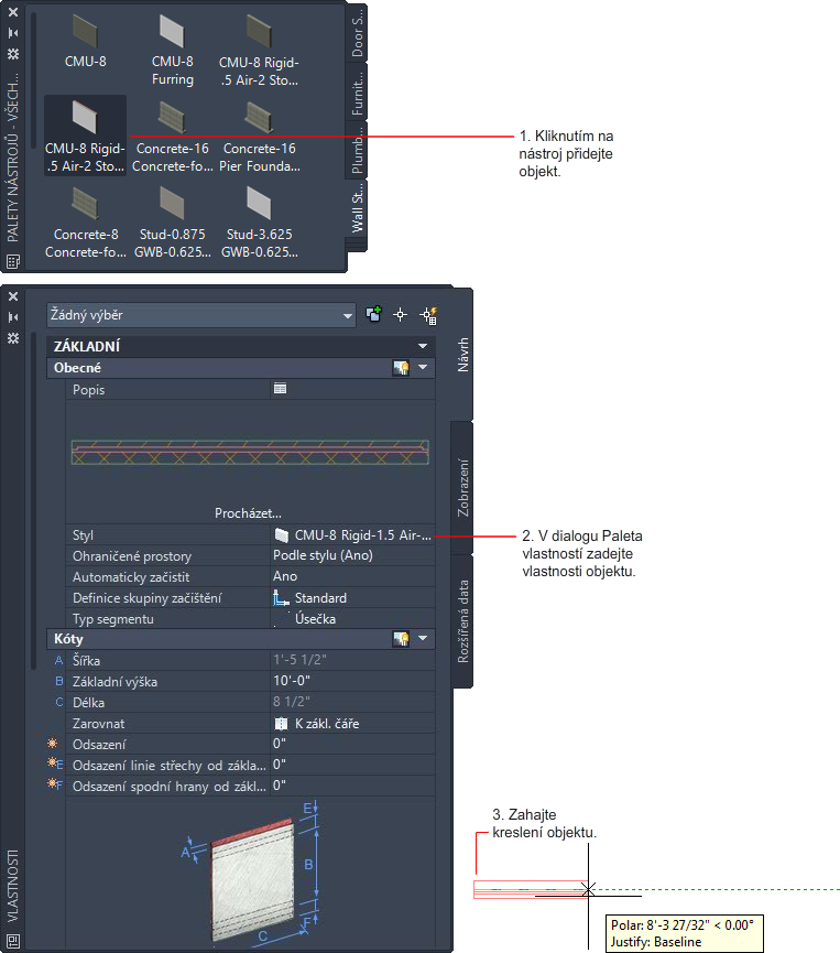 Tento postup slouží k vytvoření objektu pomocí nástroje.