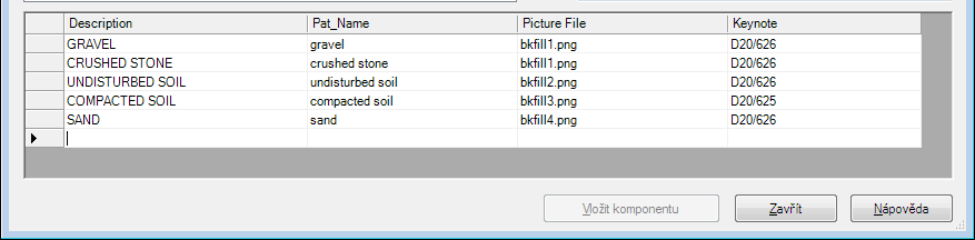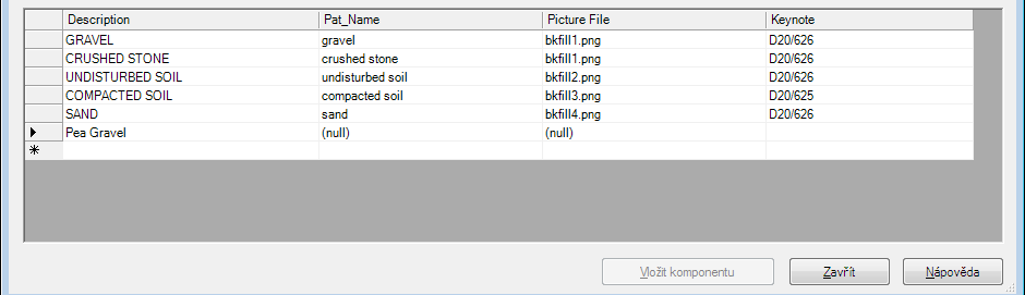 Tento postup slouží k přidání řádku k tabulce velikostí pro vybranou komponentu ve Správci komponent detailů.