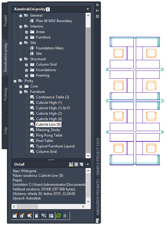 Prvek se otevře ve výkresové oblasti aplikace AutoCAD Architecture toolset. Nyní jej můžete upravit.
