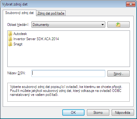 - Chcete-li vytvořit nový soubor DSN, klikněte na položku Nový.