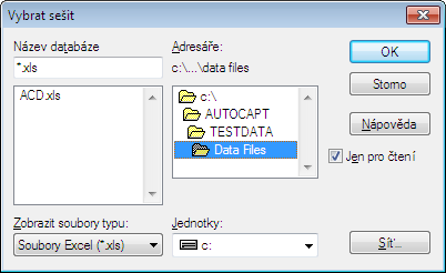 Poznámka: Další zde podporované ovladače jsou ovladač pro formát Microsoft Access (*.mdb) a ovladač Microsoft pro textový formát (*.txt, *.csv). Můžete je použít k vytvoření odkazu do databáze aplikace Access, souboru prostého textu ve formátu ASCII nebo souboru odděleného čárkami.