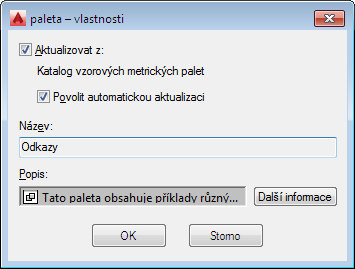 Text pod zaškrtávacím políčkem uvede název katalogu v Prohlížeči obsahu, ze kterého se paleta aktualizuje.