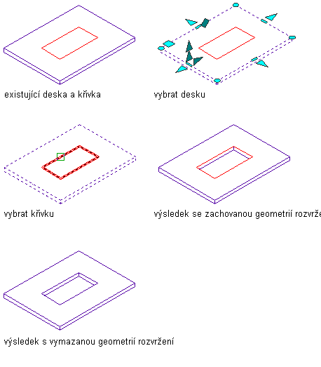 K vytvoření otvorů v desce můžete použít křivky nebo třírozměrné (3D) objekty, jako jsou stěny a objemové prvky.