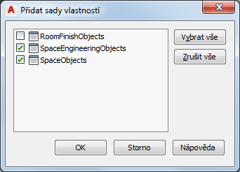 11. V dialogu Přidat sady vlastností vyberte položky SpaceEngineeringObjects a SpaceObjects a pak klikněte na tlačítko OK.