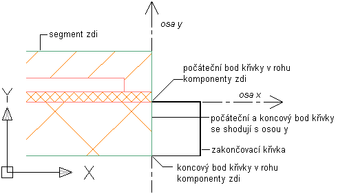 Platné křivky zakončení stěny začínají v rohu komponenty stěny na ose Y. V ideální situaci končí křivka v rohu druhé komponenty stěny na ose Y, takže počáteční i koncový bod křivky jsou totožné s osou Y a mají stejnou hodnotu X, jak je zde ukázáno.