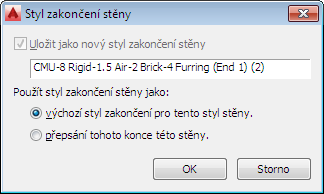 Zobrazí se dialog Styl zakončení stěny, kde lze provést následující akce: