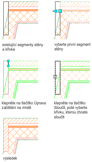 Tento postup slouží ke změně průsečíku stěny pomocí sloučení profilu s komponentou. Profil může být libovolná křivkou uzavřená plocha, která překrývá komponentu nebo je s ní koincidentní.