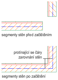 - Segmenty stěn se začistí tehdy, když se čáry zarovnání příslušných stěny čistě vzájemně protínají.